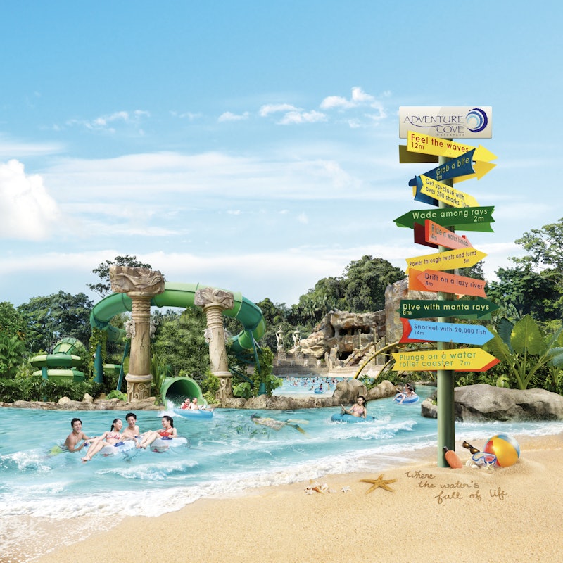 Adventure Cove Waterpark Sentosa Island. Feel the magic of wading and interacting with dozens of rays. 33 adult 22 child Sentosa Line prices excludes island admission fee.
